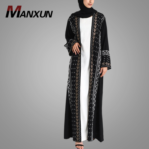 אופנה חדשה סגנון dubai הקדמי פתוח אבאיה שחור שרוול ארוך עיצוב רקמה עיצוב המוסלמי קימונו אבאיה islami